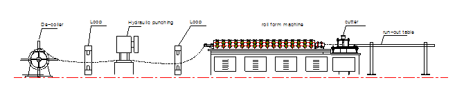 The whole Roll forming line components is depended on client individual request. The possible auxiliary equipments are included de-coiler, straightening device, pre-and post-punching, stationary cut-off machines, run-out table, etc.